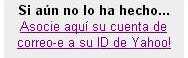 | Pinchamos sobre el enlace "Asocie aquí su cuenta de correo-e a su ID de Yahoo" de la parte izquierda de la ventana. | ![]() |